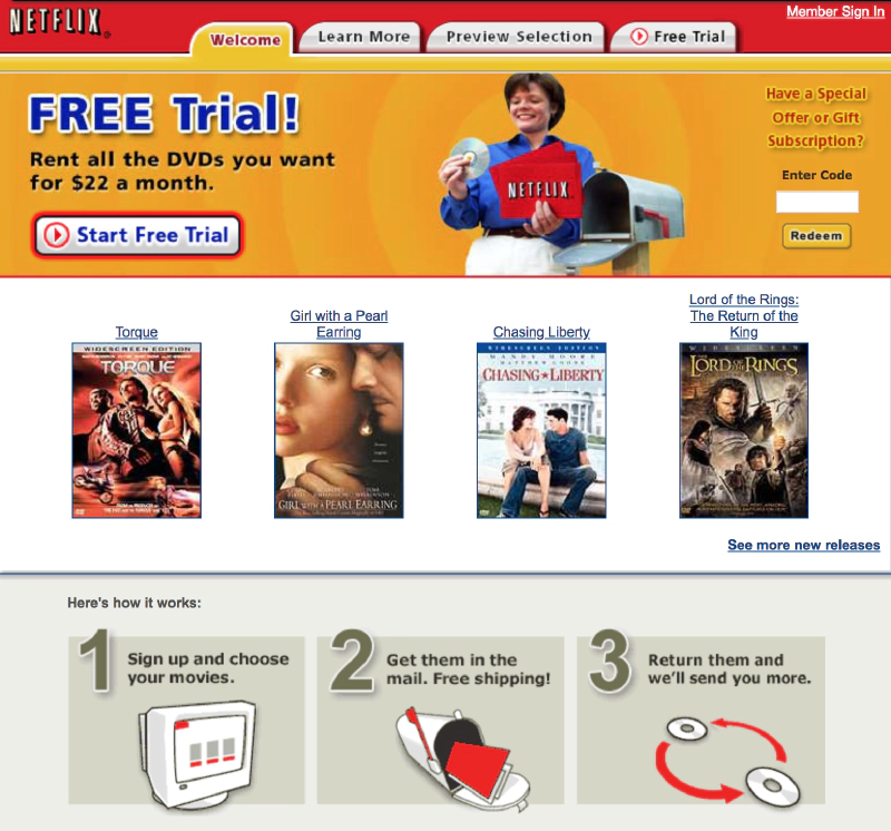 Kisah sukses terbesar pada fase ini adalah Amazon, didirikan oleh Jeff Bezos pada 1994. Pada awalnya Amazon hanyalah sebuah toko buku online, Amazon dengan cepat mengadopsi HTML 4.01 untuk memperluas fitur. Amazon mulai mengembangkan fitur katalog produk, sistem keranjang belanja, dan sistem pembayaran daring.